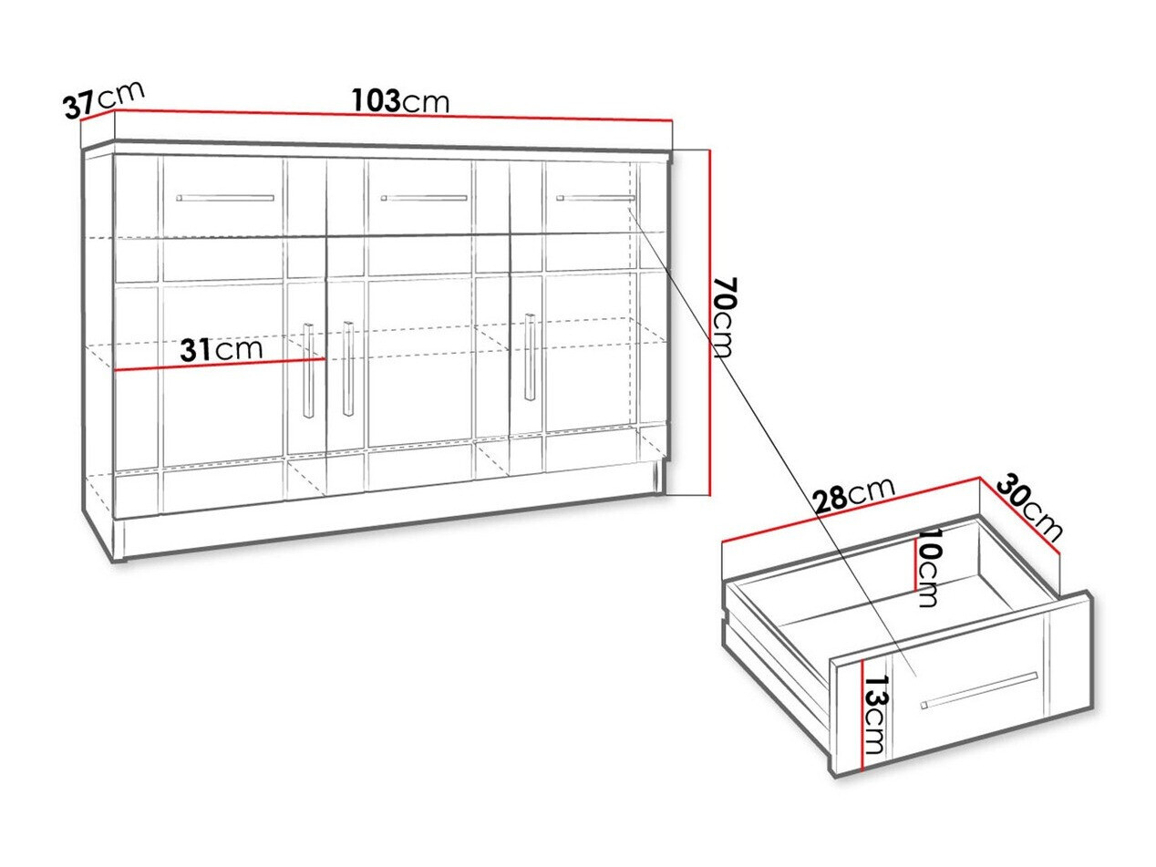 Il colore non soddisfaceva leggermente le mie esigenze (colore chiaro rovere Sonoma, ma leggermente diverso dal mobile Tuscon 149 rovere Sonoma). Ma non ci sono commenti sulle misurazioni: tutte le dimensioni sono specificate esattamente e non sono state riscontrate deviazioni. Buona anche la disposizione dei volumi interni, di cui ho bisogno.