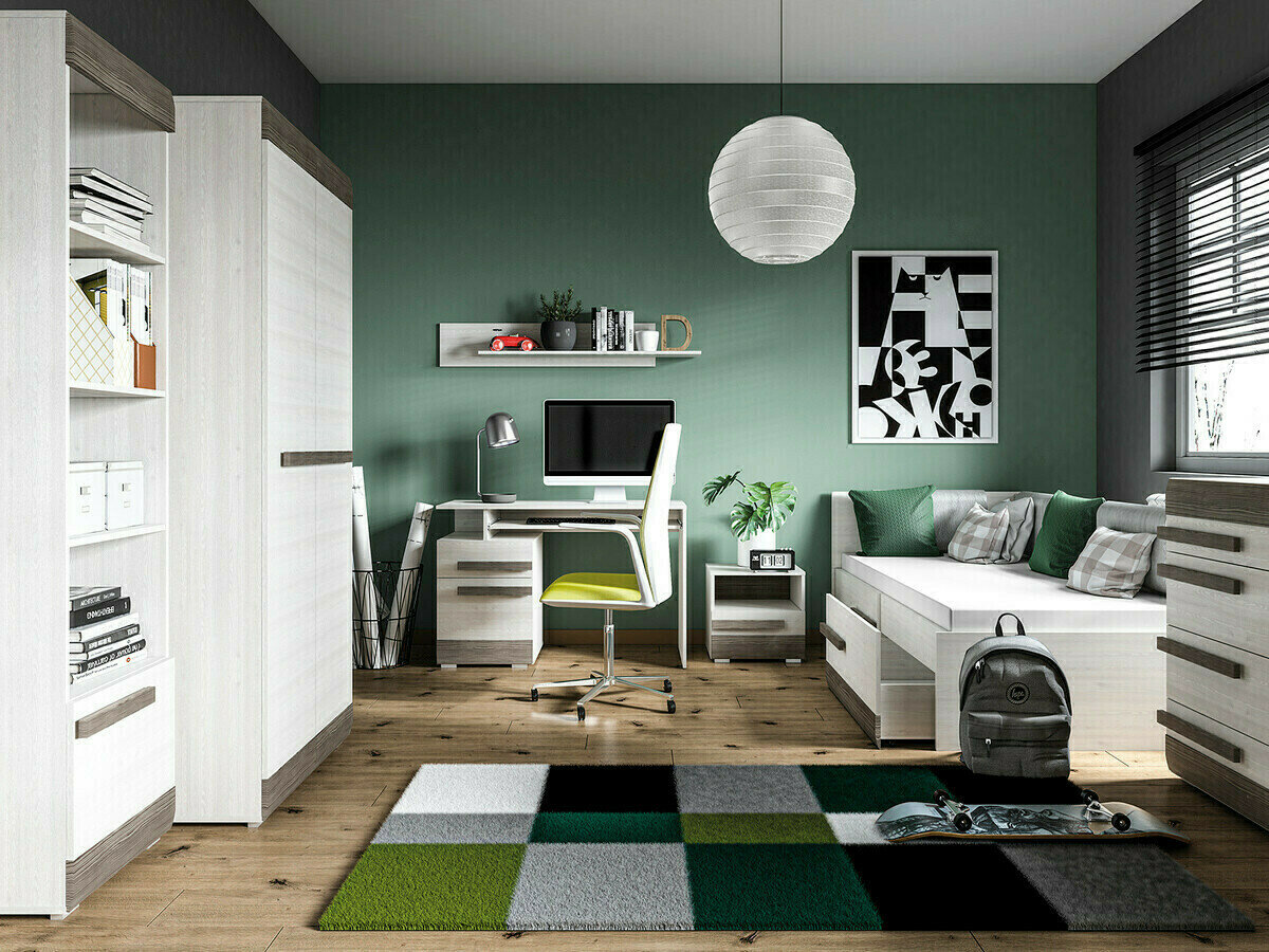 Se cerchi una collezione di mobili versatile adatta a vari spazi della casa, questa collezione è la soluzione perfetta. I pezzi di questa collezione sono adatti per soggiorni, camere da letto, ingressi o camerette. Il focus di questa collezione è sul comfort e sul bel design adattabile a gusti diversi. La combinazione di colori pino sbiancato e grigio è versatile e facilmente abbinabile. Le superfici dei mobili sono resistenti ai piccoli graffi e i bordi sono protetti con uno speciale nastro in ABS, garantendo meno preoccupazioni riguardo alla rapida usura. I mobili sono dotati di gambe e maniglie in plastica, che si integrano perfettamente nel design generale senza sovrastarlo. La collezione è caratterizzata dal vetro temperato, che è più resistente e sicuro del vetro normale. Una caratteristica pratica e universale dei mobili è che le ante possono essere montate sia a destra che a sinistra. Inoltre, i mobili offrono spazi di stoccaggio sia chiusi che aperti, aiutando nello stoccaggio organizzato degli oggetti. Per coloro che desiderano aggiungere più unicità agli interni della propria casa, per questi pezzi è possibile ordinare in aggiuntal'illuminazione a LED a risparmio energetico.