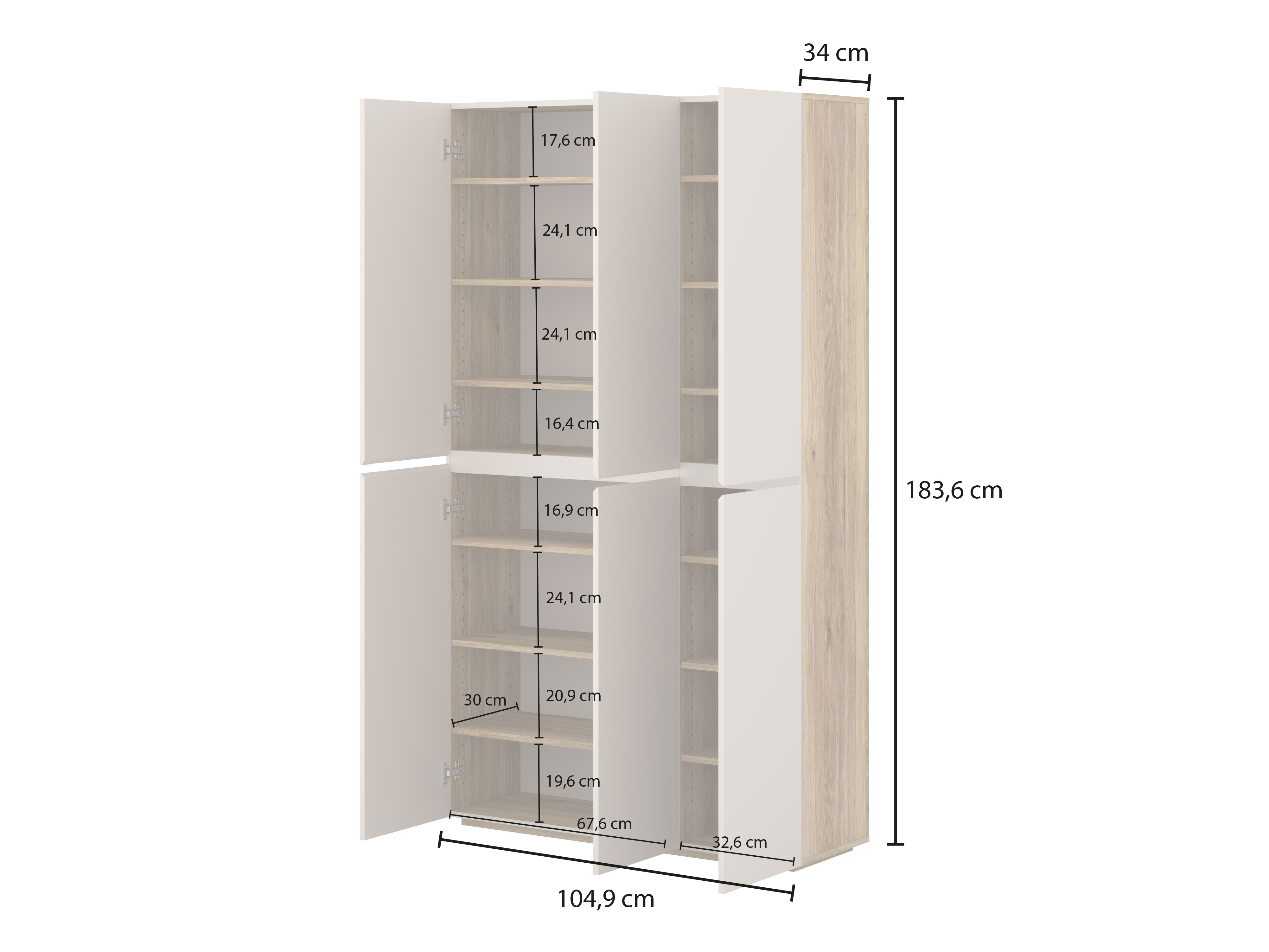 130.6 x 70 x 34; 183.6 x 104.9 x 34 cm