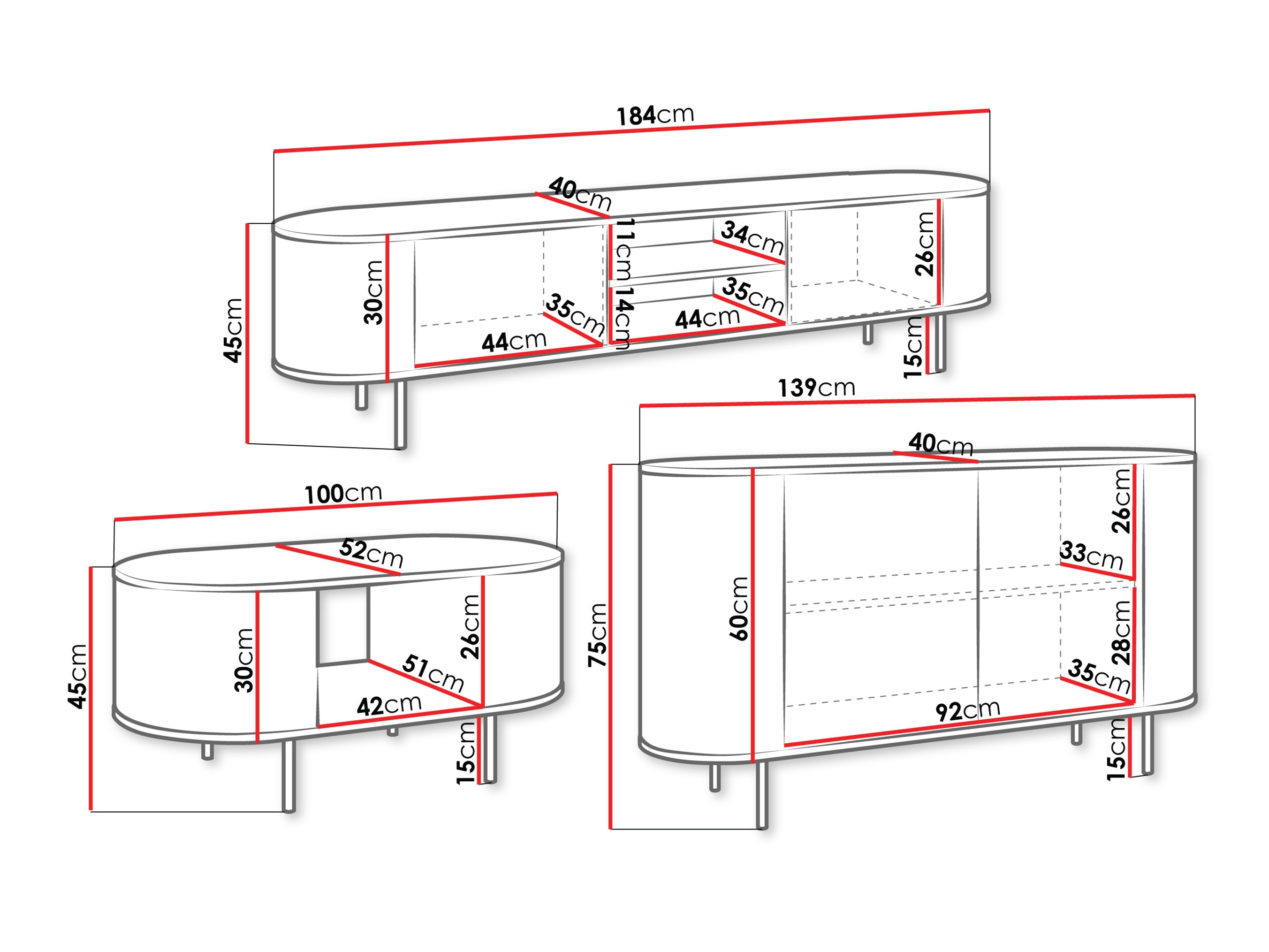 45 x 184 x 40 cm