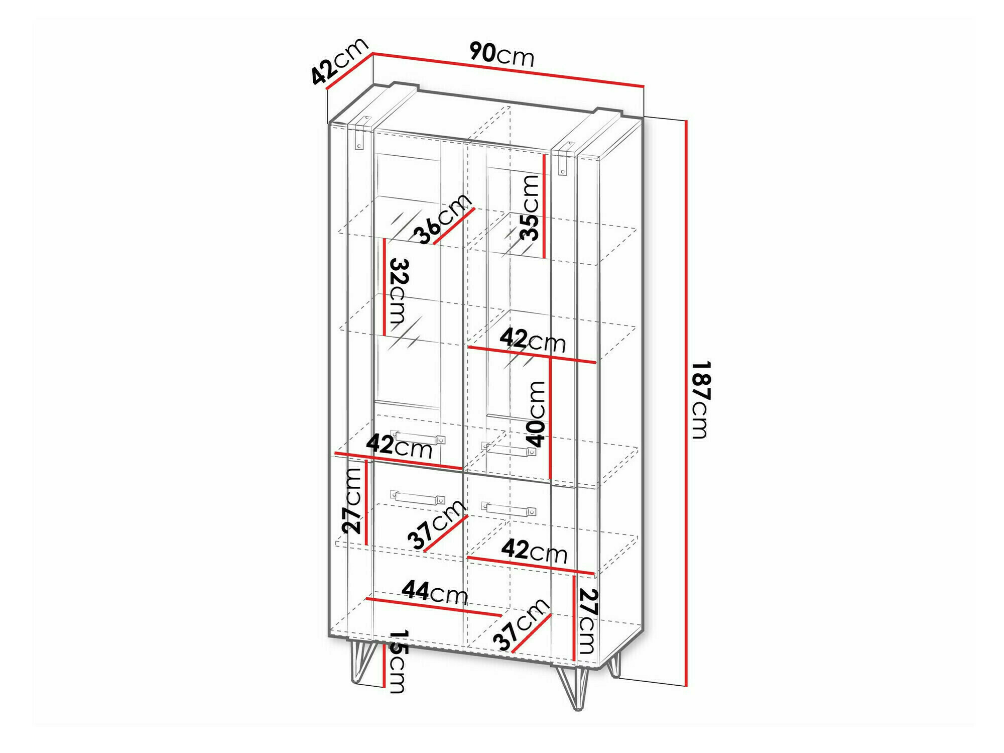 163.5 x 35 x 35; 187.1 x 90.1 x 41.3 cm
