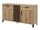 Una collezione di mobili dal design accattivante e dalla praticità che garantisce un aspetto estetico e un comodo stoccaggio in ogni ambiente. I mobili di questa collezione sono decorati con gambe e maniglie in plastica nera, che conferiscono loro espressività. Il moderno design a contrasto è ulteriormente completato dal colore rovere, abbinato a dettagli neri. Questa combinazione non è solo visivamente accattivante, ma crea anche un senso di naturalezza e calore in casa. I ripiani in vetro e gli inserti delle ante in vetro della collezione sono realizzati in vetro temperato, che è più sicuro e più durevole del vetro normale. Inoltre, c'è la possibilità di ordinare separatamente l'illuminazione a LED a risparmio energetico per la collezione, che aggiungerà un accento moderno e luminoso alla tua casa. Con questa collezione potrai creare facilmente un soggiorno o un corridoio armonioso o completare qualsiasi altro spazio della tua casa.