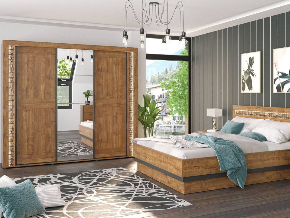 Con i mobili di questa collezione, la tua casa non passerà inosservata. La collezione offre una vasta gamma di mobili più adatti per soggiorni o camere da letto. Grazie alla combinazione "April" in quercia e colore nero, i mobili sono particolarmente adatti per interni industriali. L'inserto con motivi di legno è un accento autentico di questa collezione, che offre unicità dei mobili e le maniglie in plastica nera garantiscono perfettamente il design. Le facciate di mobili sono realizzate in truciolato laminato, protetto da uno speciale nastro ABS che protegge i bordi dei mobili dai danni. I cassetti e le porte saranno chiusi senza alcun rumore aggiuntivo perché i mobili di questa collezione hanno un meccanismo di chiusura silenzioso. Le vetrine di mobili utilizzano vetro temperato trattato termicamente. Questo tipo di vetro è molto più sicuro e più resistente del normale vetro. Inoltre, l'illuminazione a LED a risparmio energetico può essere aggiunto nelle vetrine per le serate romantiche. Un mobile molto pratico di questa collezione è un trasformatore di tavolini. Questo tipo di tavolo ti permetterà di goderti un normale tavolino che non occuperà molto spazio e, se necessario, puoi trasformarlo in un tavolo da pranzo in grado di ospitare tutta la famiglia o gli ospiti. La collezione offre anche due tipi di armadi, uno più stretto con porte incernierate e uno più grande con porte scorrevoli e uno specchio. Abbina i mobili di questa collezione con le tonalità leggere delle pareti per dare carattere alla stanza. Combinandolo con pareti e mobili di colore scuro, creerai un vero interno in stile industriale.