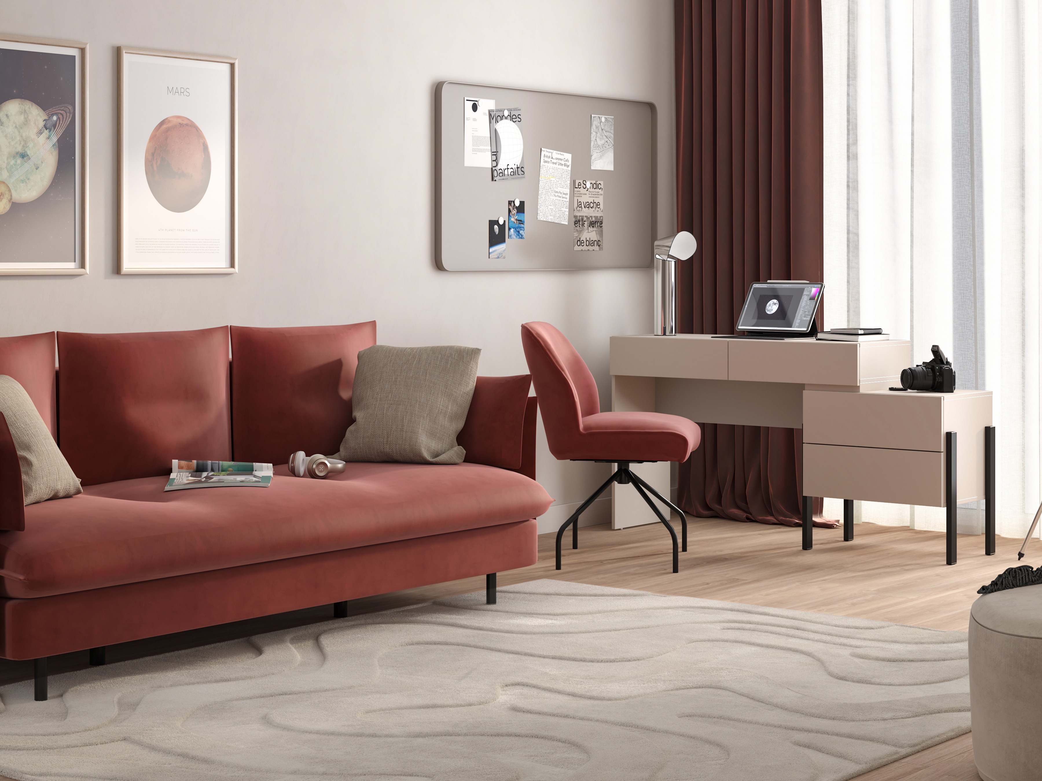 Una collezione che riflette un approccio moderno agli interni domestici: pulita, organizzata e funzionale. Questi mobili in stile contemporaneo presentano linee definite e un'estetica raffinata che conferisce un senso di modernità a qualsiasi spazio. Le caratteristiche gambe in metallo aggiungono leggerezza visiva e un tocco di carattere, fungendo da accenti discreti che evidenziano la forma del mobile e valorizzano l'interno. La finitura opaca rafforza l'estetica pulita e minimalista, aggiungendo al contempo un tocco di sobria eleganza. Questa è una collezione in cui design e funzionalità lavorano in armonia contribuendo a creare un ambiente domestico moderno, equilibrato e confortevole.