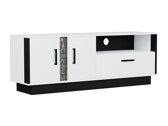 Questa collezione di mobili per il soggiorno è dominata da bianco lucido integrato da dettagli neri. Gli elementi di imitazione in legno danno ai mobili un carattere esclusivo. Le facciate dei mobili sono decorate con maniglie di plastica nera. Il vetro temperato utilizzato nella raccolta è più resistente agli effetti meccanici rispetto al vetro ordinario. L'illuminazione a LED a risparmio energetico opzionale fornirà un'atmosfera unica. I bordi dei mobili sono protetti con un nastro di finitura speciale che li protegge da danni minori. I mobili hanno un meccanismo di chiusura silenzioso che impedisce la chiusura rapida ai cassetti e alle porte. Se stai cercando di creare un interno di casa esclusivo ed elegante, ti invitiamo a prestare attenzione a questa collezione!