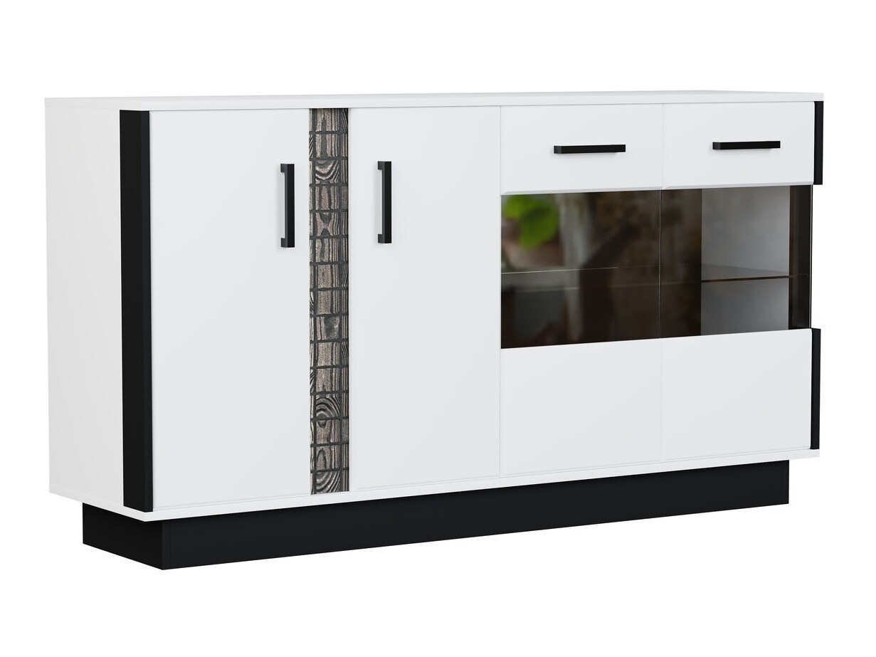 Questa collezione di mobili per il soggiorno è dominata da bianco lucido integrato da dettagli neri. Gli elementi di imitazione in legno danno ai mobili un carattere esclusivo. Le facciate dei mobili sono decorate con maniglie di plastica nera. Il vetro temperato utilizzato nella raccolta è più resistente agli effetti meccanici rispetto al vetro ordinario. L'illuminazione a LED a risparmio energetico opzionale fornirà un'atmosfera unica. I bordi dei mobili sono protetti con un nastro di finitura speciale che li protegge da danni minori. I mobili hanno un meccanismo di chiusura silenzioso che impedisce la chiusura rapida ai cassetti e alle porte. Se stai cercando di creare un interno di casa esclusivo ed elegante, ti invitiamo a prestare attenzione a questa collezione!