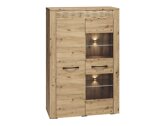 Le facciate dei mobili sono stampate con motivi in legno, che conferiscono unicità alla collezione. Le maniglie in metallo sottolineano ulteriormente il design esclusivo dei mobili. Un carattere aggiuntivo è dato dagli ornamenti decorativi, che sono accentuati dall'illuminazione a LEDintegrata nelle facciate dei mobili. Puoi anche ordinare l'illuminazione a LED per le vetrine, che metterà in risalto i dettagli degli interni. Facciate in rovere "Artisan", vetri temperati, illuminazione a led e maniglie in metallo rendono unica la collezione. Tutto è plasmato dallo spazio perfettamente utilizzato nei mobili. Pertanto, sarai in grado di collocare tutti i tuoi oggetti più importanti.