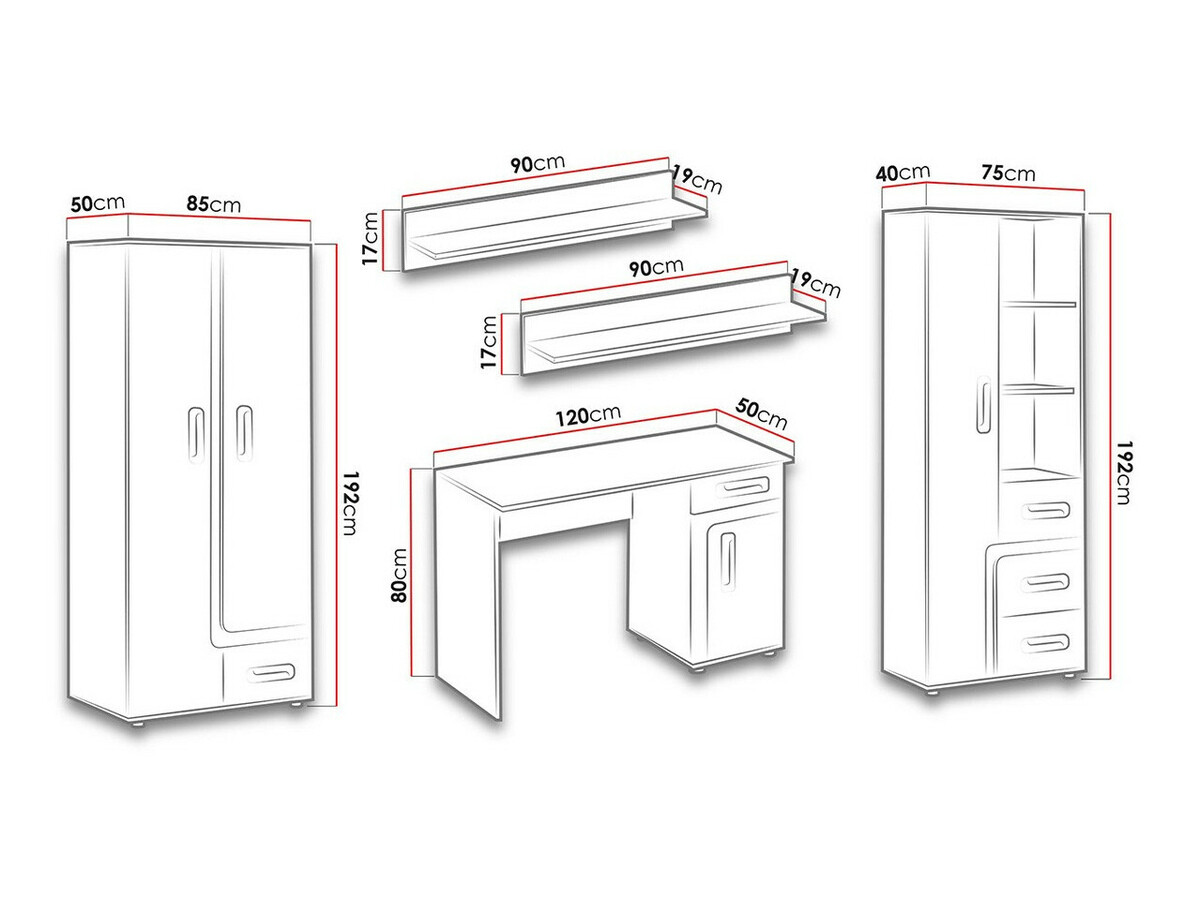 192 x 85 x 50 cm