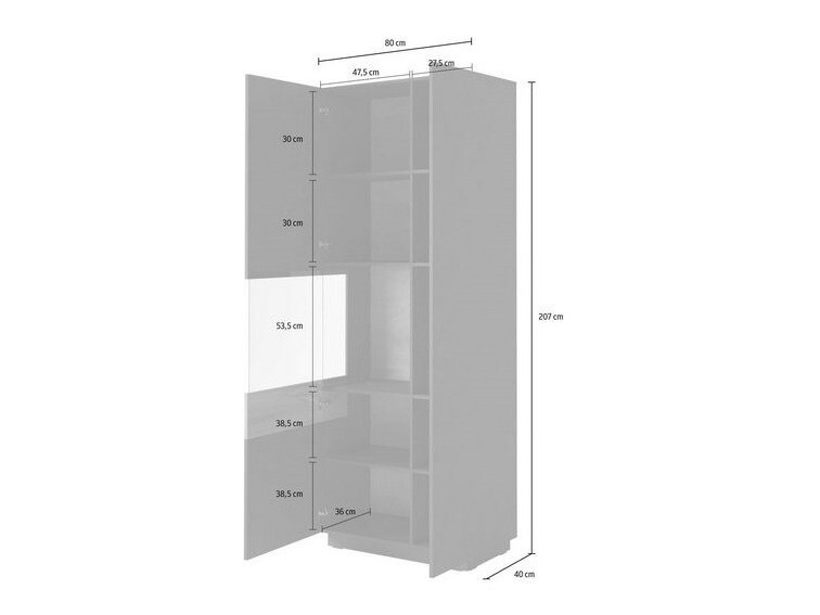 La collezione combina i colori grigio scuro o bianco, con decorazioni color rovere. Puoi anche scegliere la combinazione di bianco e color cemento chiaro. Le superfici lucide e bianche conferiranno alla tua casa un senso di freschezza, mentre il grigio opaco enfatizzerà l'unicità degli interni.