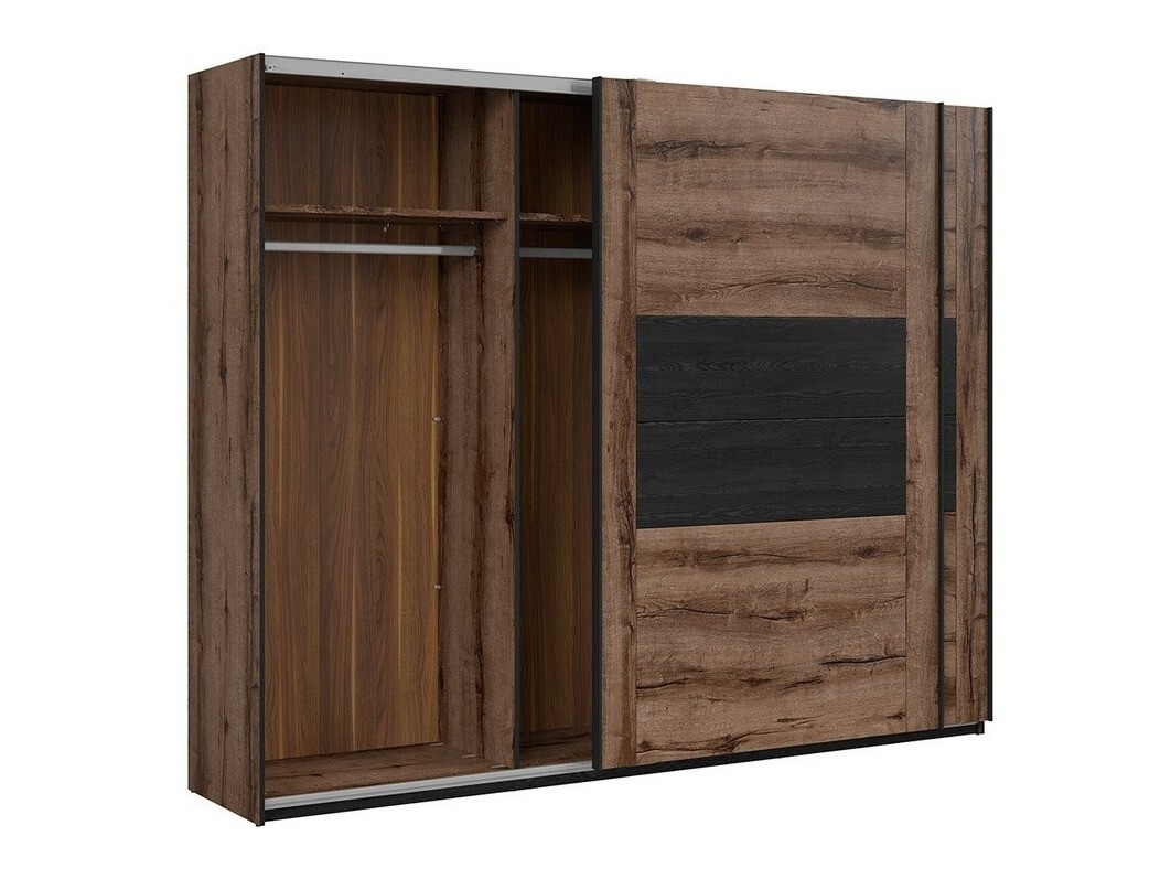 Gli amanti dello stile industriale devono vedere questa collezione. Nelle facciate della collezione dominano i colori scuri del "Monastery" e della quercia nera. Il colore rovere scuro si integra perfettamente con il bordo nero, che conferisce unicità al design del mobile. Sono state scelte maniglie nere piuttosto massicce, che si adattano perfettamente al tutto. Il colore e i motivi del legno creano un design di mobili industriali dall'aspetto unico. La collezione utilizza il vetro temperato, che è più sicuro e ha una maggiore resistenza meccanica rispetto al vetro ordinario. Per l'interno della camera da letto è possibile scegliere letti di diverse dimensioni con o senza contenitore. Il set letto comprende un reticolo con meccanismo di sollevamento a gas. Puoi aggiungere ulteriore fascino alla collezione ordinando anche l'illuminazione a LED a risparmio energetico. I mobili della collezione hanno vani portaoggetti sia aperti che chiusi, quindi adatti per una pratica esposizione di effetti personali.