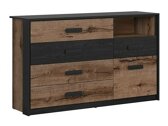 Gli amanti dello stile industriale devono vedere questa collezione. Nelle facciate della collezione dominano i colori scuri del "Monastery" e della quercia nera. Il colore rovere scuro si integra perfettamente con il bordo nero, che conferisce unicità al design del mobile. Sono state scelte maniglie nere piuttosto massicce, che si adattano perfettamente al tutto. Il colore e i motivi del legno creano un design di mobili industriali dall'aspetto unico. La collezione utilizza il vetro temperato, che è più sicuro e ha una maggiore resistenza meccanica rispetto al vetro ordinario. Per l'interno della camera da letto è possibile scegliere letti di diverse dimensioni con o senza contenitore. Il set letto comprende un reticolo con meccanismo di sollevamento a gas. Puoi aggiungere ulteriore fascino alla collezione ordinando anche l'illuminazione a LED a risparmio energetico. I mobili della collezione hanno vani portaoggetti sia aperti che chiusi, quindi adatti per una pratica esposizione di effetti personali.