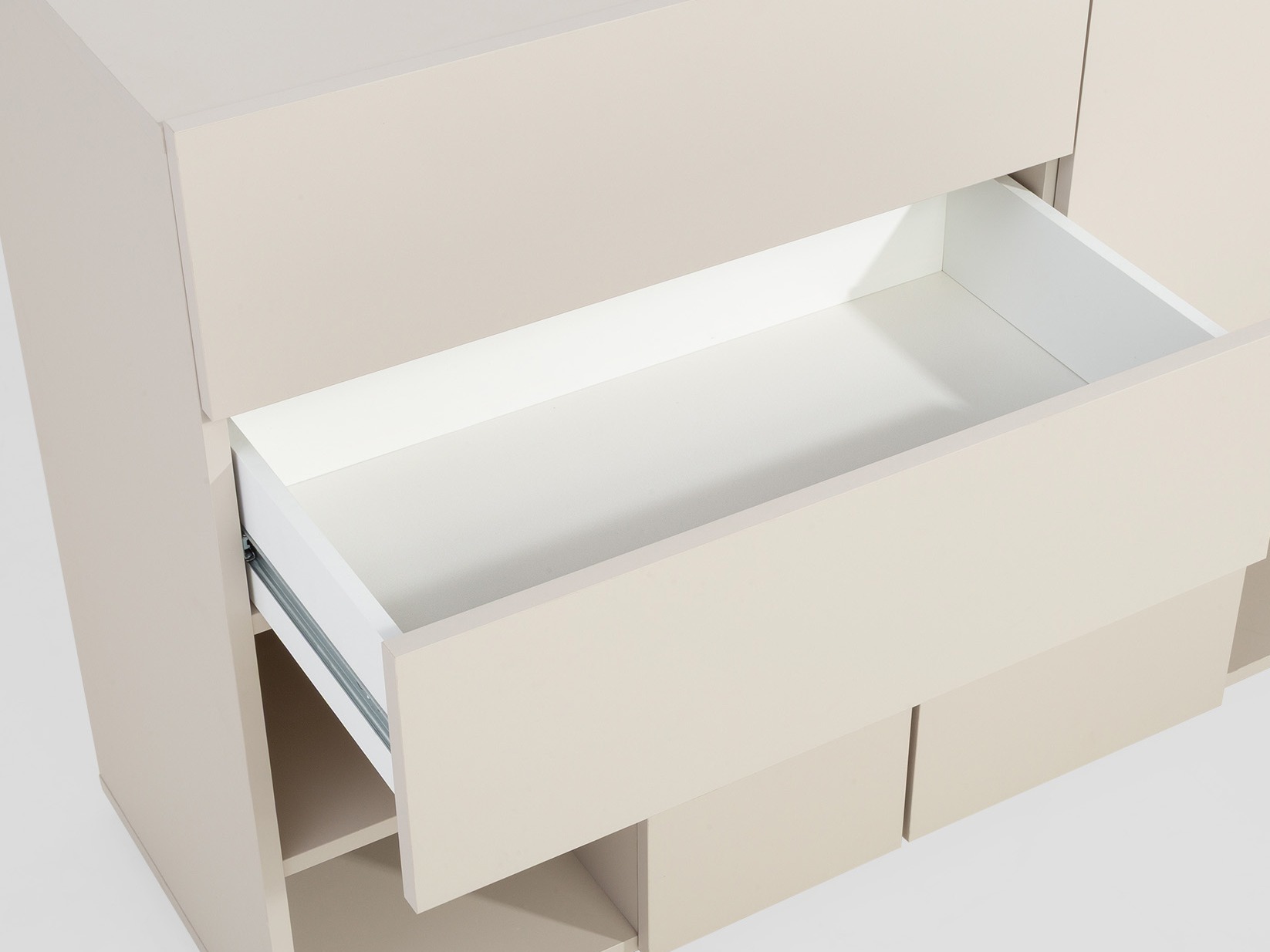 La cameretta di un bambino è lo spazio in cui nascono le prime idee, dove si gioca e si svolgono le scoperte quotidiane. In questo ambiente, tutto conta: dal comfort e dalla funzionalità all'estetica, che aiuta il bambino a sentirsi veramente a casa nel proprio spazio. Questa collezione di mobili è stata progettata proprio con questo in mente. La morbida tonalità cashmere trasmette un senso di apertura e calma, mentre il design moderno mantiene un aspetto pulito e minimalista. Questi pezzi sono adatti a bambini di diverse età, crescendo con loro nel tempo. Composta da scrivania, cassettiera e letto, la collezione contribuisce a creare un ambiente funzionale, accogliente e facile da curare, uno spazio in cui i bambini possono sentirsi al sicuro, ispirati e liberi di creare il proprio mondo.