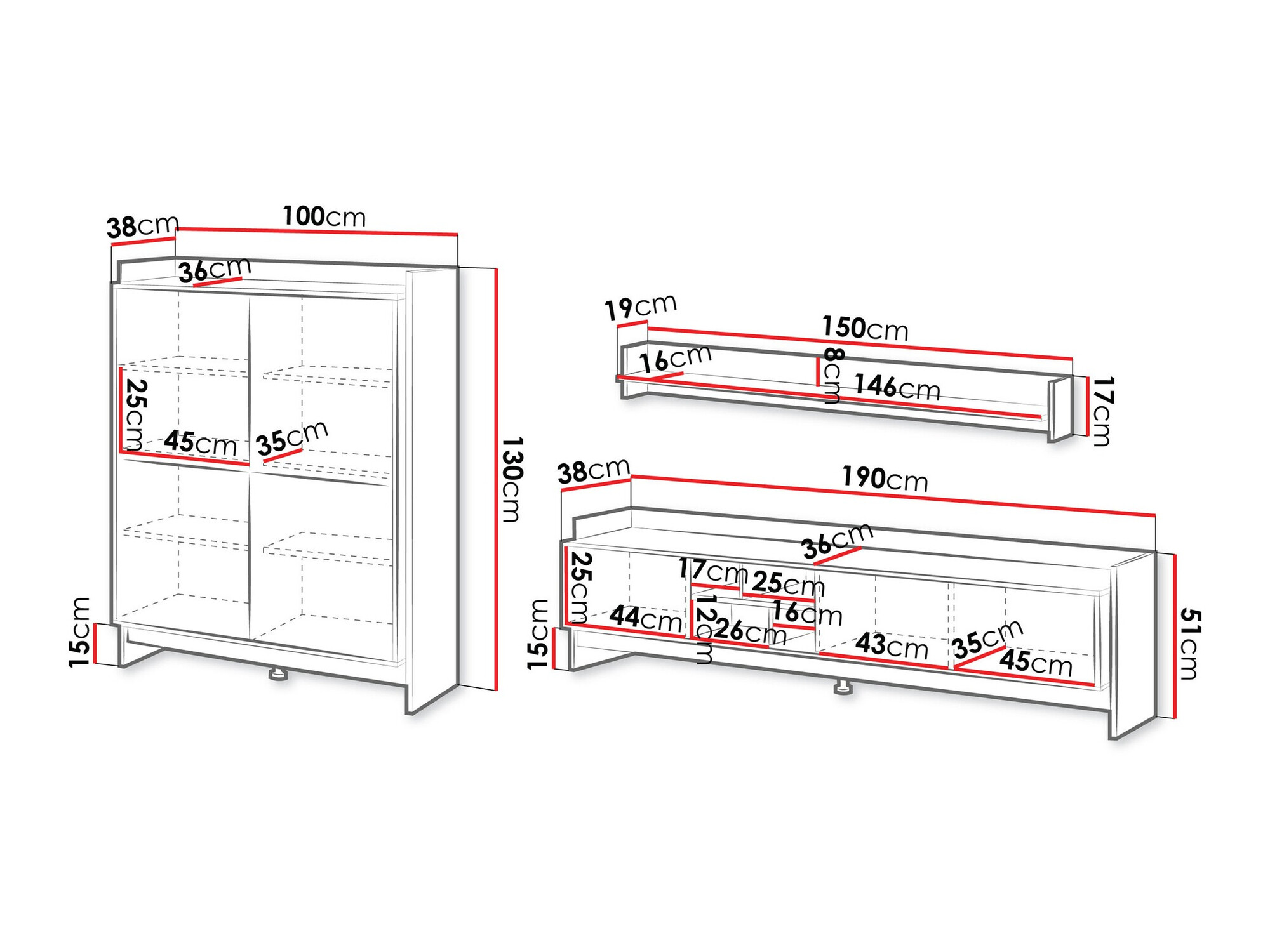51 x 190 x 38 cm