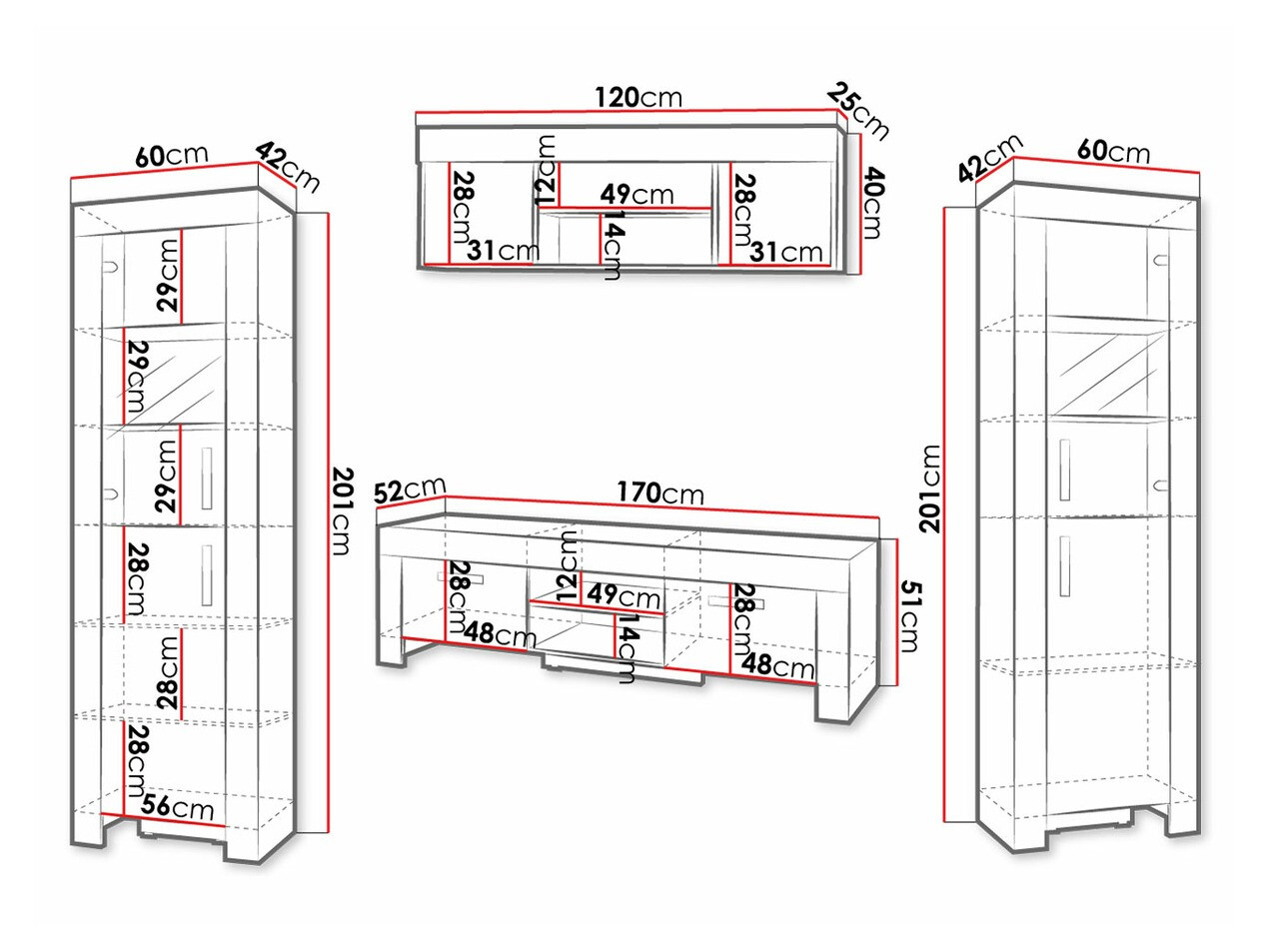 201 x 60 x 42 cm