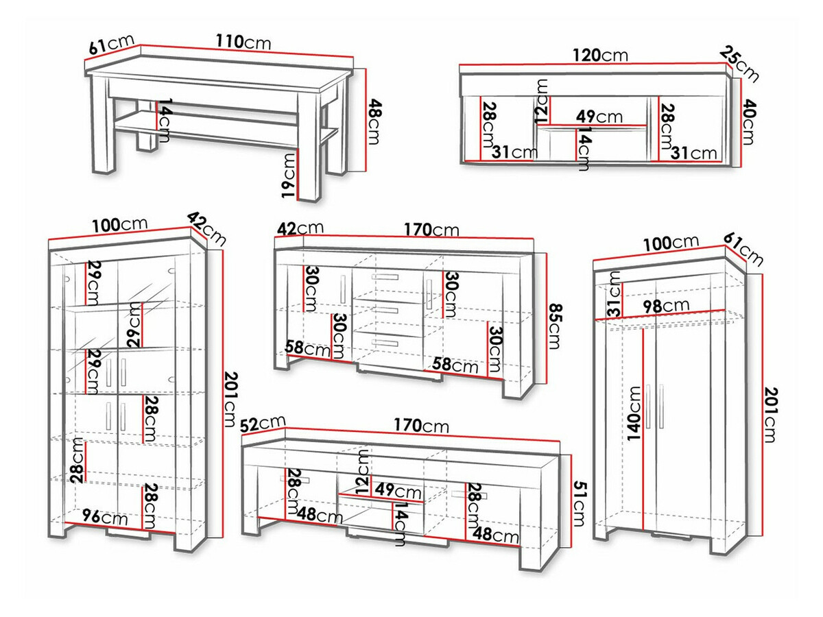 201 x 100 x 42 cm