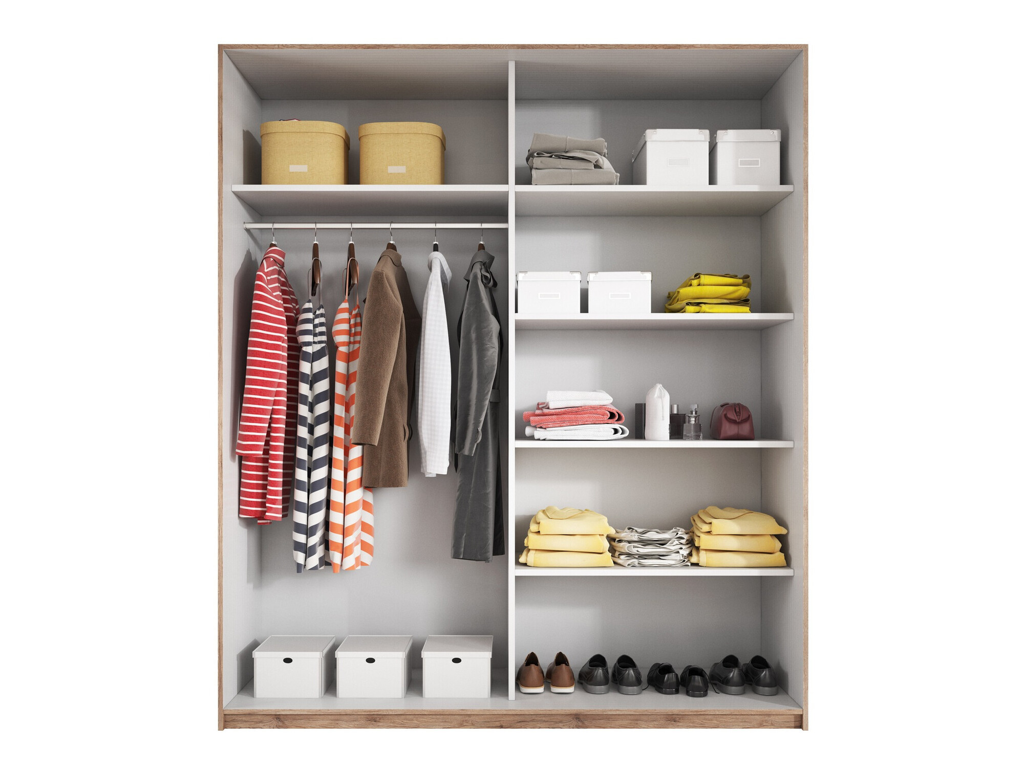 L'armadio è molto elegante, l'ho scelto principalmente per la sua disposizione interna. Sono soddisfatto dell'acquisto; l'unica cosa che potrei migliorare è il pannello posteriore troppo sottile. Per il resto, lo consiglio vivamente.