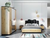 Questa collezione di mobili offre mobili per il soggiorno e la camera da letto. Il design moderno e le linee eleganti si completano a vicenda creando una combinazione perfetta. La collezione attira l'attenzione con i suoi colori caldi e i dettagli in legno. I pannelli neri opachi si abbinano alle facciate color quercia. Questa combinazione di colori si completa a vicenda, sottolineando la forma dei mobili. Il vetro temperato viene utilizzato nelle vetrine, che è più resistente del vetro ordinario. Un letto con un design esclusivo diventerà il momento clou della camera da letto. Testiera morbida, scatola di biancheria da letto, meccanismo di sollevamento a gas, tutto il necessario per il tuo riposo perfetto. I bordi dei mobili in questa collezione sono protetti con un nastro di finitura, che di solito viene utilizzato per proteggere i bordi dei pannelli.