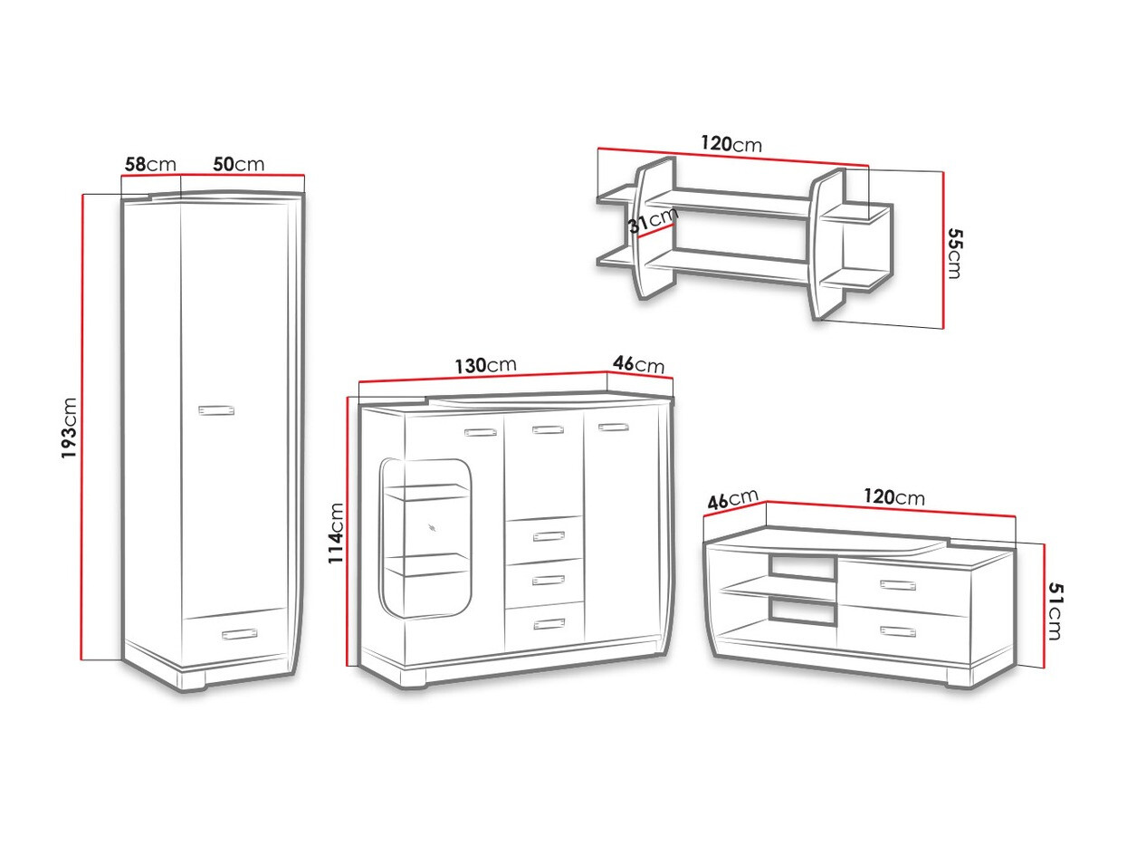192.5 x 50 x 58 cm
