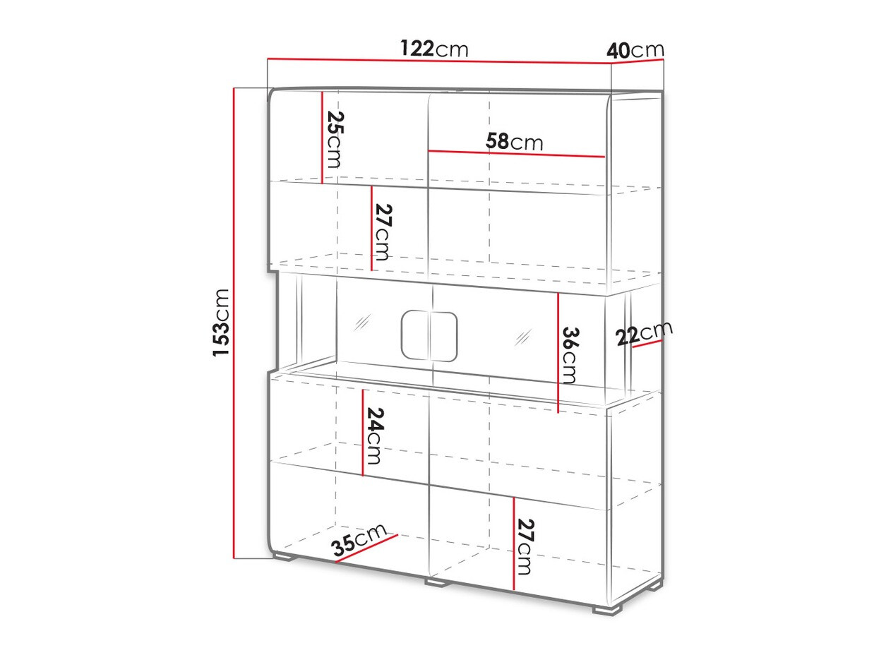 La collezione comprende armadi di varie dimensioni, ampie cassettiere, una mensola e un tavolino. La finitura lucida dei mobili ingrandirà la stanza a livello visivo. Le ante e i cassetti della cassettiera si aprono in un clic - comodità assicurata dal meccanismo "Push to open" integrato.