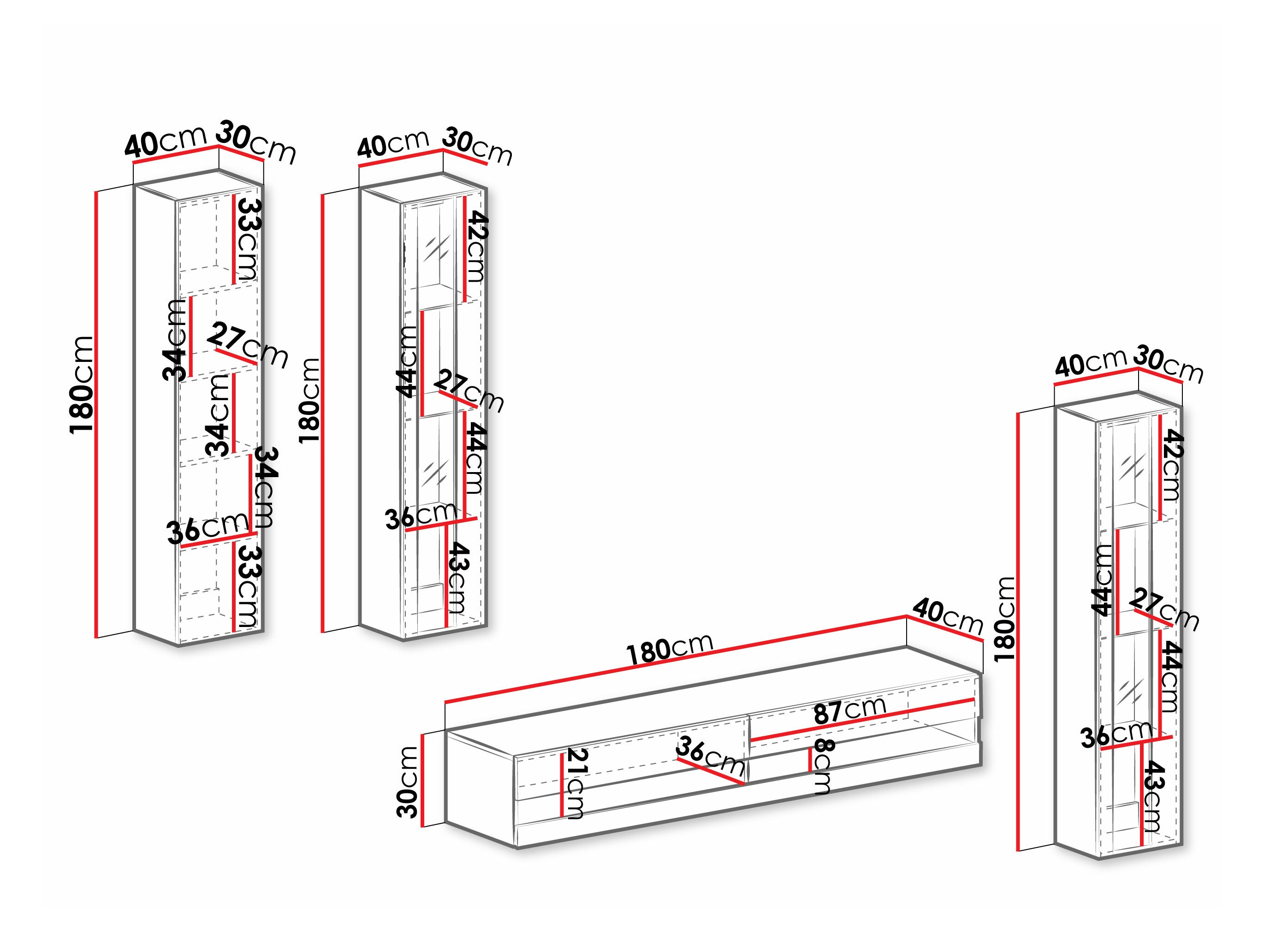 Questa moderna collezione di mobili crea un'estetica armoniosa per il soggiorno, esaltandone al contempo il senso di spazio. Forme minimaliste e scelte di design funzionali contribuiscono a creare un ambiente confortevole ed elegante. Dai mobili per il soggiorno alle mensole a parete, i pezzi di questa collezione sono progettati per integrarsi perfettamente, facilitando la creazione di soluzioni pratiche per spazi più piccoli o combinazioni più audaci in ambienti più ampi. Alcuni modelli includono un'illuminazione LED integrata a risparmio energetico per aggiungere calore, mentre gli elementi in vetro temperato contribuiscono a un aspetto raffinato e leggero. Un meccanismo di apertura one-touch sulle ante mantiene la silhouette pulita e minimalista dei mobili. Questa versatile collezione si adatta facilmente a una varietà di stili d'interni, contribuendo a creare uno spazio abitativo contemporaneo e accogliente.