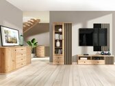 Il colore di quercia "Artisan" domina nella collezione e i dettagli in legno possono essere notati già dalle facciate. Le piccole maniglie dimetallo nero si fondono perfettamente in tutto il design. Le linee verticali decorative diventano un accento della collezione. Questa soluzione offre ai mobili un carattere esclusivo e sostituisce anche le maniglie dei mobili, consentendo l'apertura delle porte dei mobili. I mobili non mancano di scaffali e cassetti, che aiuteranno a conservare le cose più importanti. Un meccanismo di chiusura silenzioso è installato nei mobili, il che è speciale perché protegge le porte e i cassetti dalla chiusura rapida. Grazie agli ammortizzatori speciali, le porte e i cassetti vengono fermati appena prima della chiusura e si ritirano lentamente senza causare rumore. Da un mobile a una vetrina, da un tavolo TV a uno scaffale sospeso, in questa collezione troverai una varietà di mobili per il soggiorno. Se vuoi creare un interno completo senza troppo sforzo, scegli un set di mobili.