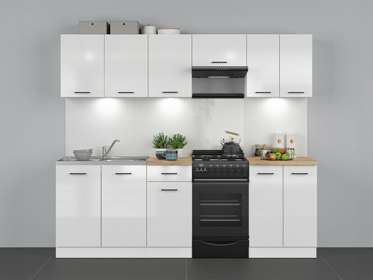 Crea un set da cucina unico con la collezione di mobili da cucina modulari. Questa collezione presenta una varietà di mobili da terra e a parete, oltre a diversi set da cucina già progettati. I frontali lucidi dei mobili, completati da maniglie in plastica nera, porteranno un tocco di discreta modernità alla tua cucina. Scegli tra diverse combinazioni di colori all'interno della collezione.