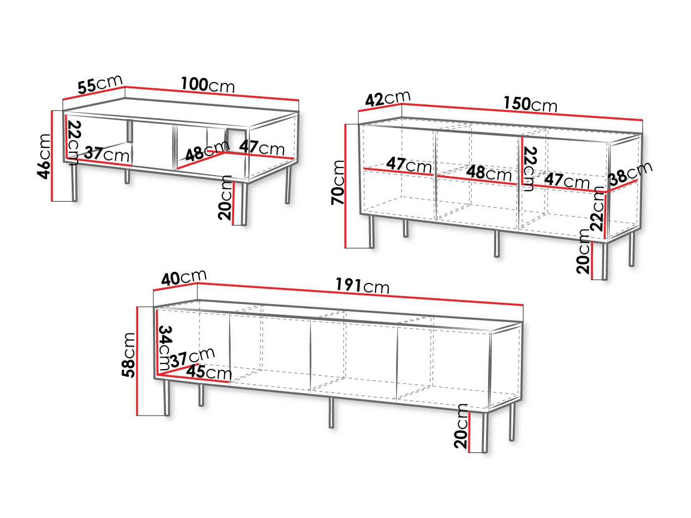 58 x 191 x 40 cm