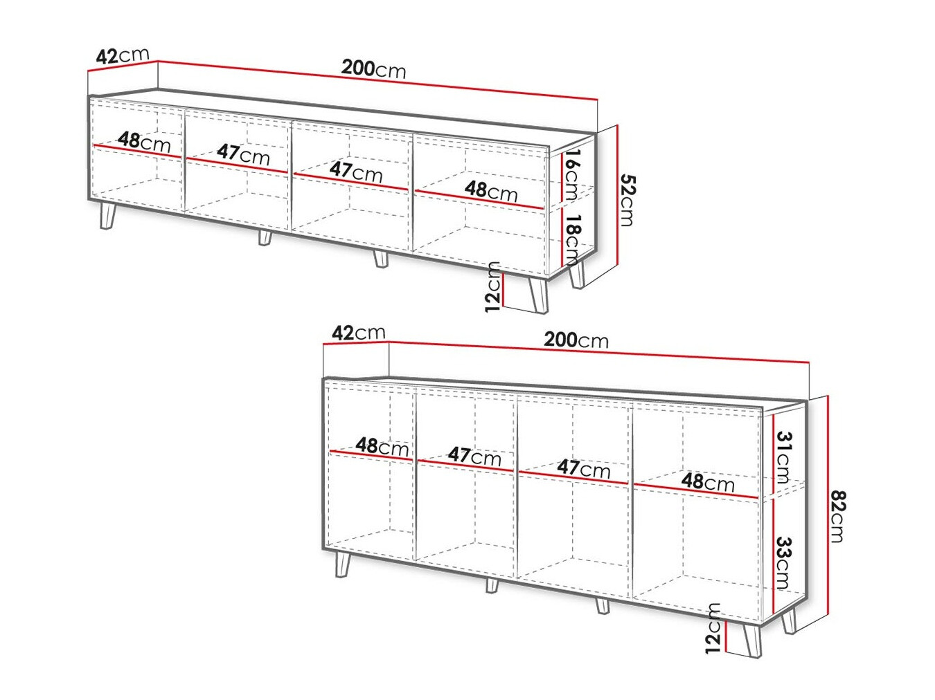 52 x 200 x 42 cm
